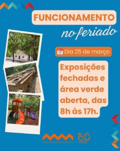 A Casa de José de Alencar informa que, no dia 25 de março, feriado estadual da Data Magna do Ceará, adotará funcionamento especial.