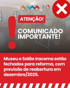 nformamos que o Salão Iracema e o Museu Arthur Ramos encontram-se temporariamente fechados para reforma dos pisos de madeira (taco). A intervenção é necessária para a preservação do patrimônio histórico e para oferecer melhores condições de visitação ao público.